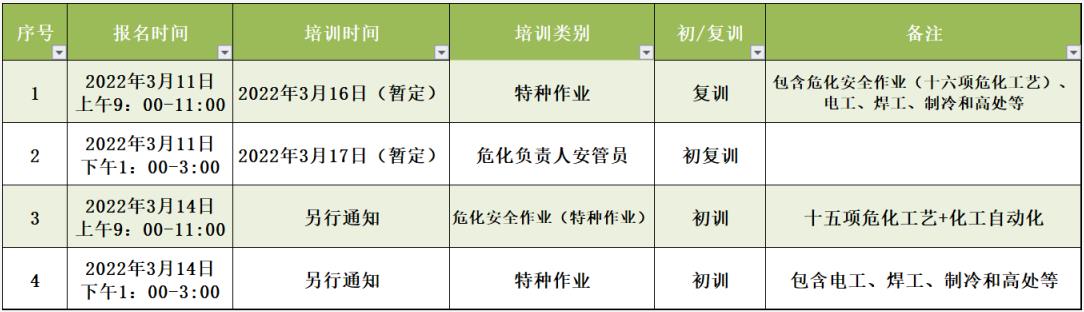 嘉興港區(qū)三月 特種作業(yè)(高壓電工、低壓電工、高處作業(yè)、制冷與空調(diào)、焊工操作證等)、;(fù)責(zé)人安管員 報(bào)名培訓(xùn)計(jì)劃