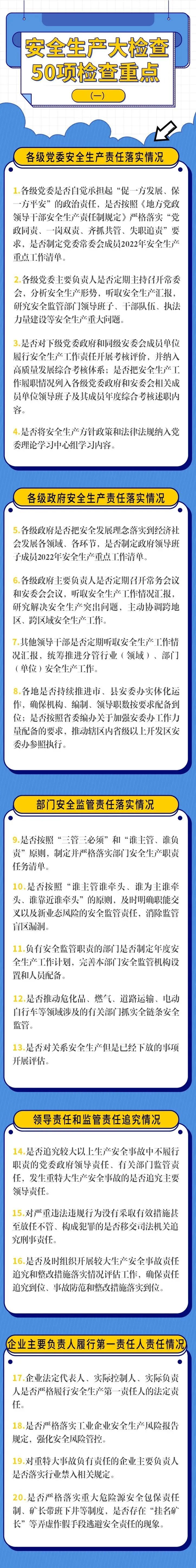 根據(jù)黨中央、國務(wù)院決策部署和全國安全生產(chǎn)大檢查工作安排,自4月中旬至6月底,國務(wù)院安委會組織16個綜合檢查組,對31個。ㄗ灾螀^(qū)、直轄市)和新疆生產(chǎn)建設(shè)兵團安全生產(chǎn)大檢查情況進行綜合督導(dǎo),并同步開展國務(wù)院2021年度省級政府安全生產(chǎn)和消防工作考核巡查及國務(wù)院安委會成員單位安全生產(chǎn)工作考核。