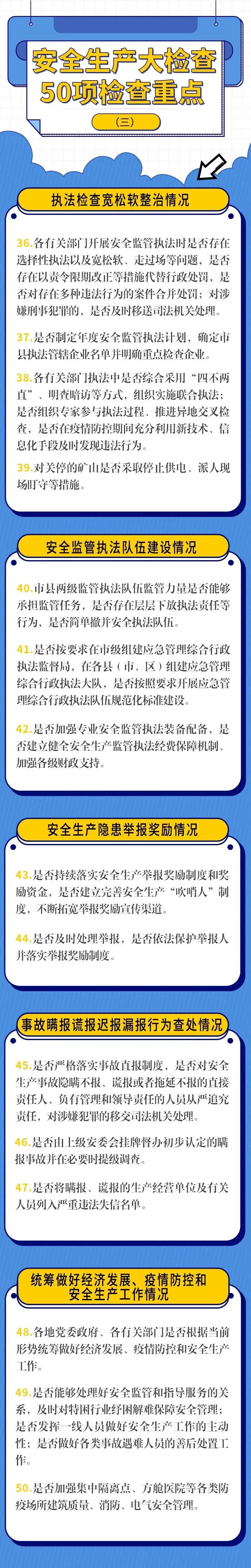 此次綜合督導(dǎo)和考核巡查將更加注重問題導(dǎo)向,突出解決問題,切實提升工作效能,進一步推動各地區(qū)、各有關(guān)部門統(tǒng)籌做好經(jīng)濟發(fā)展、疫情防控和安全生產(chǎn)“三件大事”,堅決落實安全生產(chǎn)責(zé)任措施,堅決防范遏制重特大事故,為經(jīng)濟發(fā)展和社會穩(wěn)定提供更加堅實的安全保障。