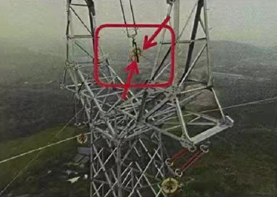 N7塔橫擔(dān)處遺留安全帶尾繩