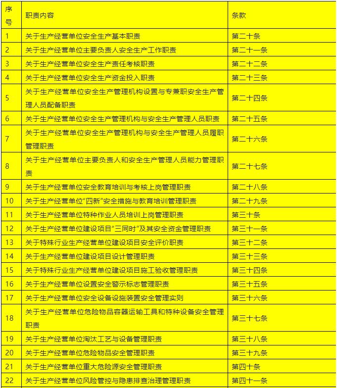 生產(chǎn)經(jīng)營單位安全生產(chǎn)職責(zé)一覽表(簡稱“50條職責(zé)條款”)
