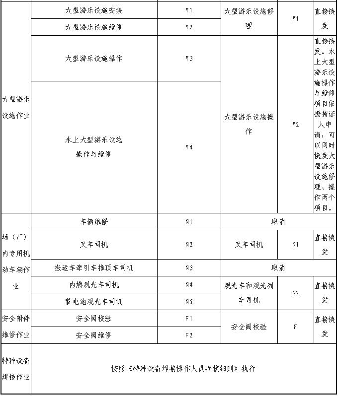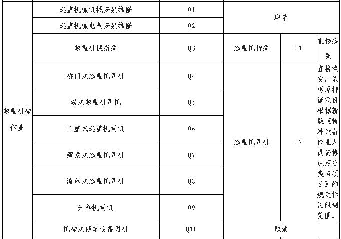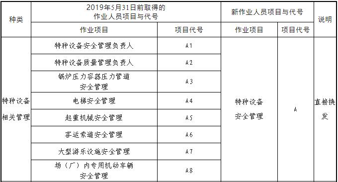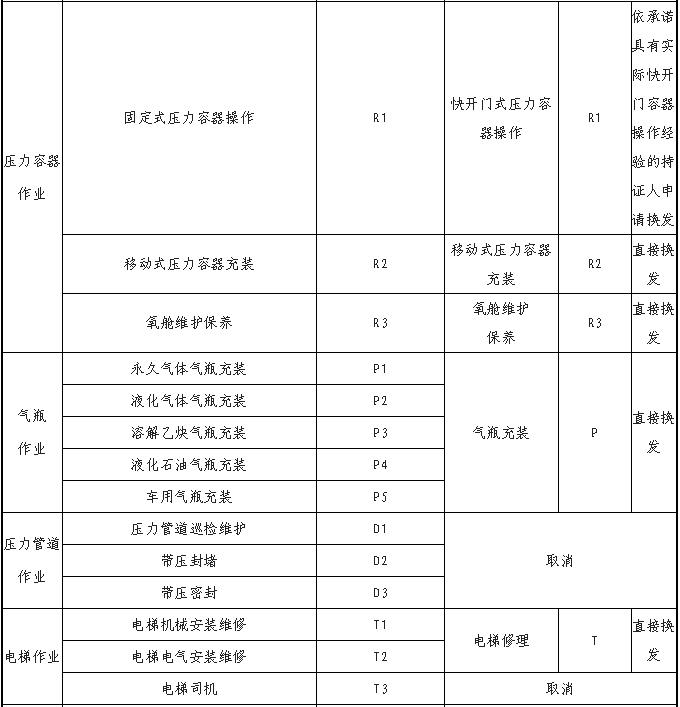 特種設(shè)備作業(yè)人員證書換發(fā)對(duì)應(yīng)表