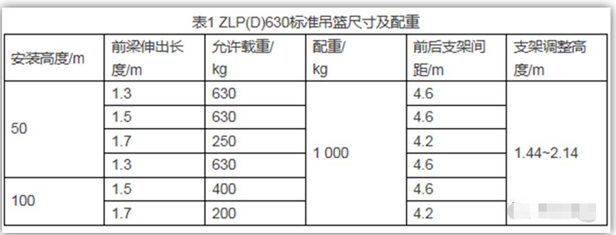 5、高處作業(yè)ZLP630吊籃尺寸及配重 目前市場上通常采用的吊籃有ZLP(D)630, ZLP(D)800, ZLP(D)1000型號(hào)。表1為ZLP(D)630標(biāo)準(zhǔn)吊籃尺寸及配重情況。