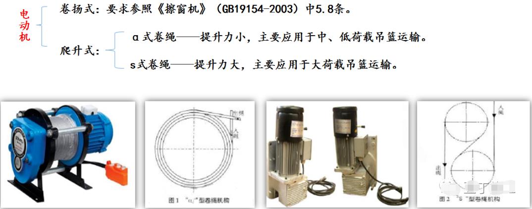 7、高處作業(yè)吊籃工作原理 電動(dòng)提升機(jī)工作原理: 吊籃提升機(jī)構(gòu)的基本原理,如同在筆上纏一圈繩后,向上拉緊繩的情況下,旋動(dòng)筆時(shí),筆會(huì)上下移動(dòng)。 提升機(jī)不是收卷或釋放鋼絲繩,而是靠驅(qū)動(dòng)輪與工作鋼絲繩之間的咬合摩擦,工作時(shí)鋼絲繩靜止不動(dòng),驅(qū)動(dòng)輪在其上爬行,從而帶動(dòng)提升機(jī)及懸吊平臺(tái)整體提升。