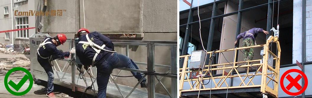 嚴(yán)禁將吊籃用作垂直運(yùn)輸設(shè)備。作業(yè)人員應(yīng)從地面上下吊籃,嚴(yán)禁從窗戶、洞口上下吊籃。