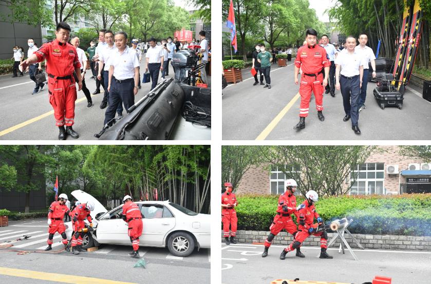 隨后,參加活動人員到演練區(qū)域觀摩了交通事故破拆、有限空間發(fā)生事故應(yīng)急救援、火災(zāi)模擬逃生演練和應(yīng)急救援裝備展示。